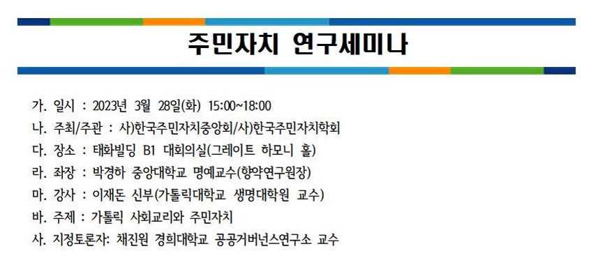 내일 오후 3시부터 열리는 주민자치 연구 세미나는 가톨릭 사회교리와 주민자치를 연계해 고찰하는 시간으로 마련됩니다.