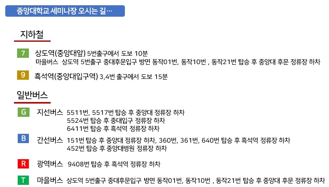 세미나 장소도 기존에 열리던 태화빌딩과 중앙대에서 이원화되어 열립니다.